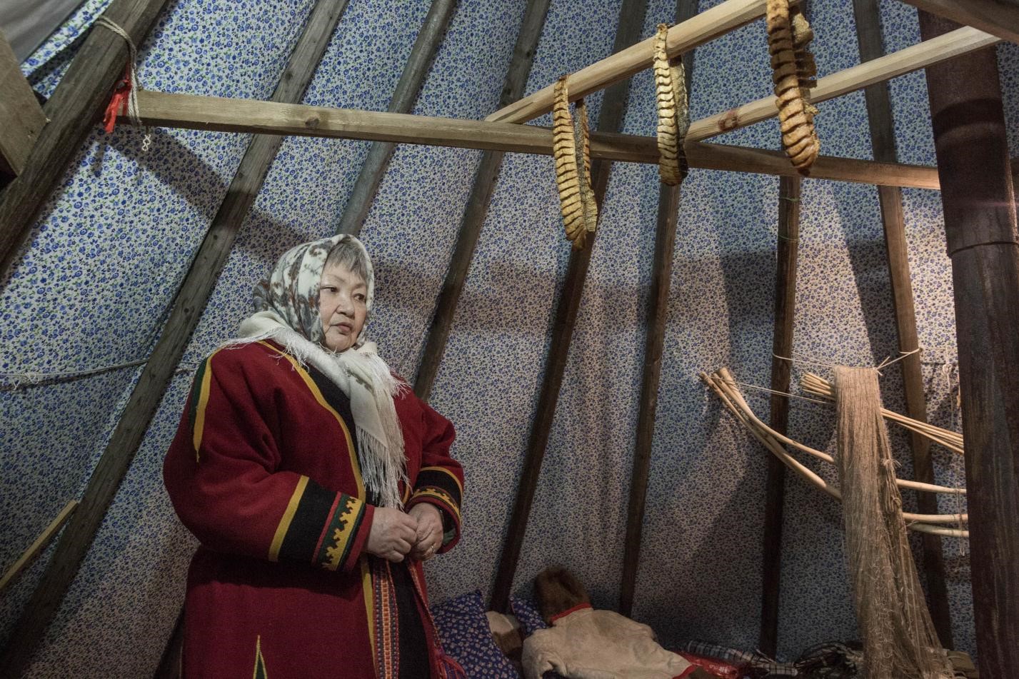 Эвенка Татьяна в национальном чуме. Фото: Юлия Невская. Источник: goarctic.ru