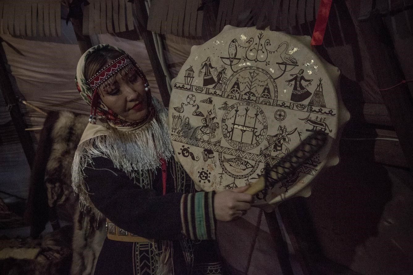 Долганка Светлана и шаманский бубен. Фото: Юлия Невская. Источник: goarctic.ru