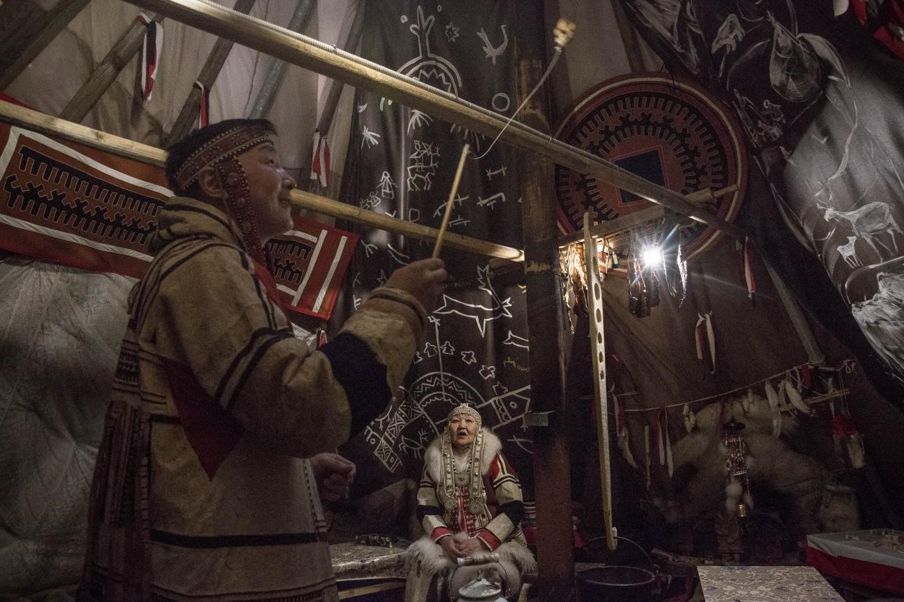 Представители пяти коренных народов Таймыра проводят обряд кормления огня. Фото: Юлия Невская. Источник: goarctic.ru