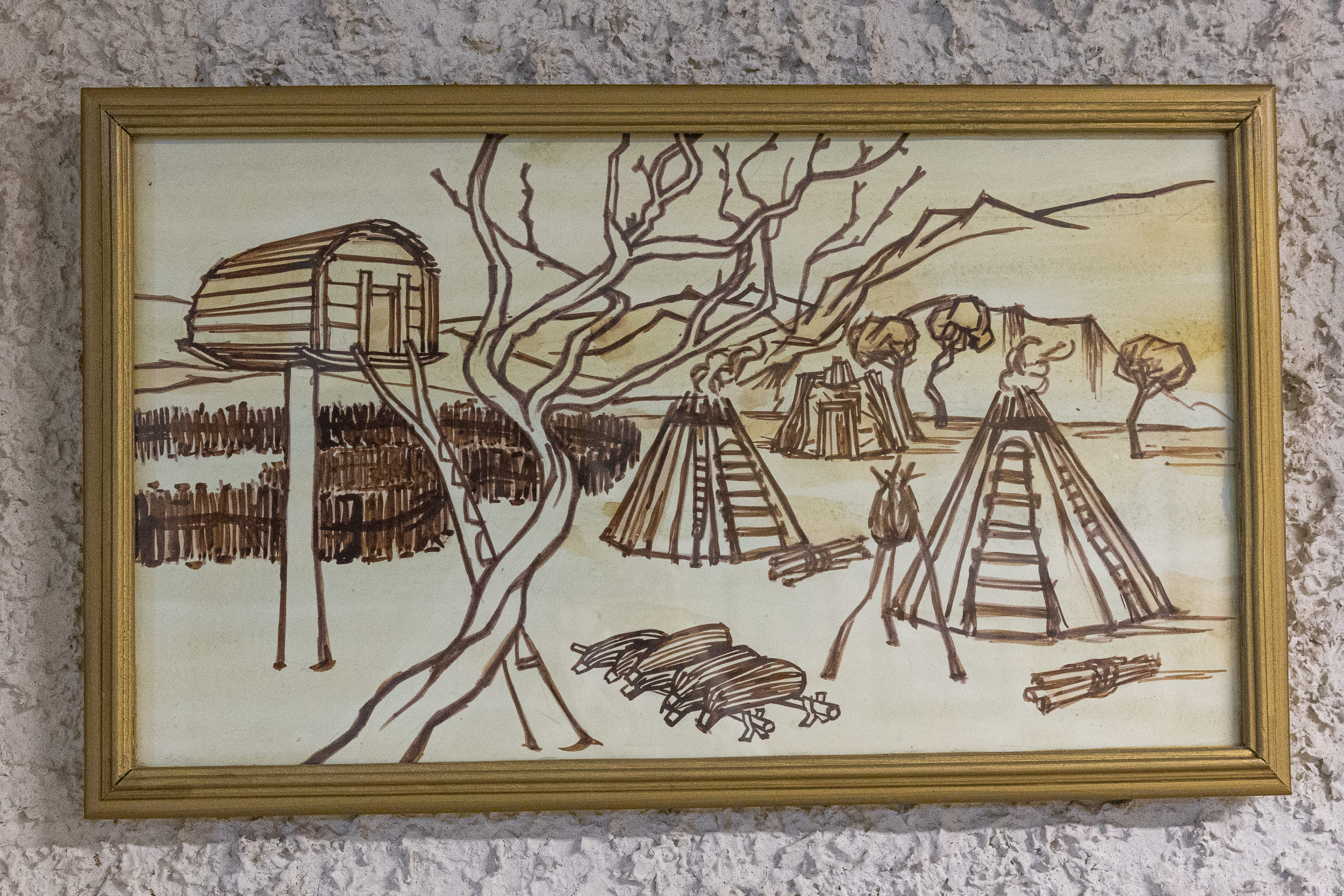 Изображение традиционного саамского жилища. Экспозиция Музея истории, культуры и быта кольских саамов в Лавозере