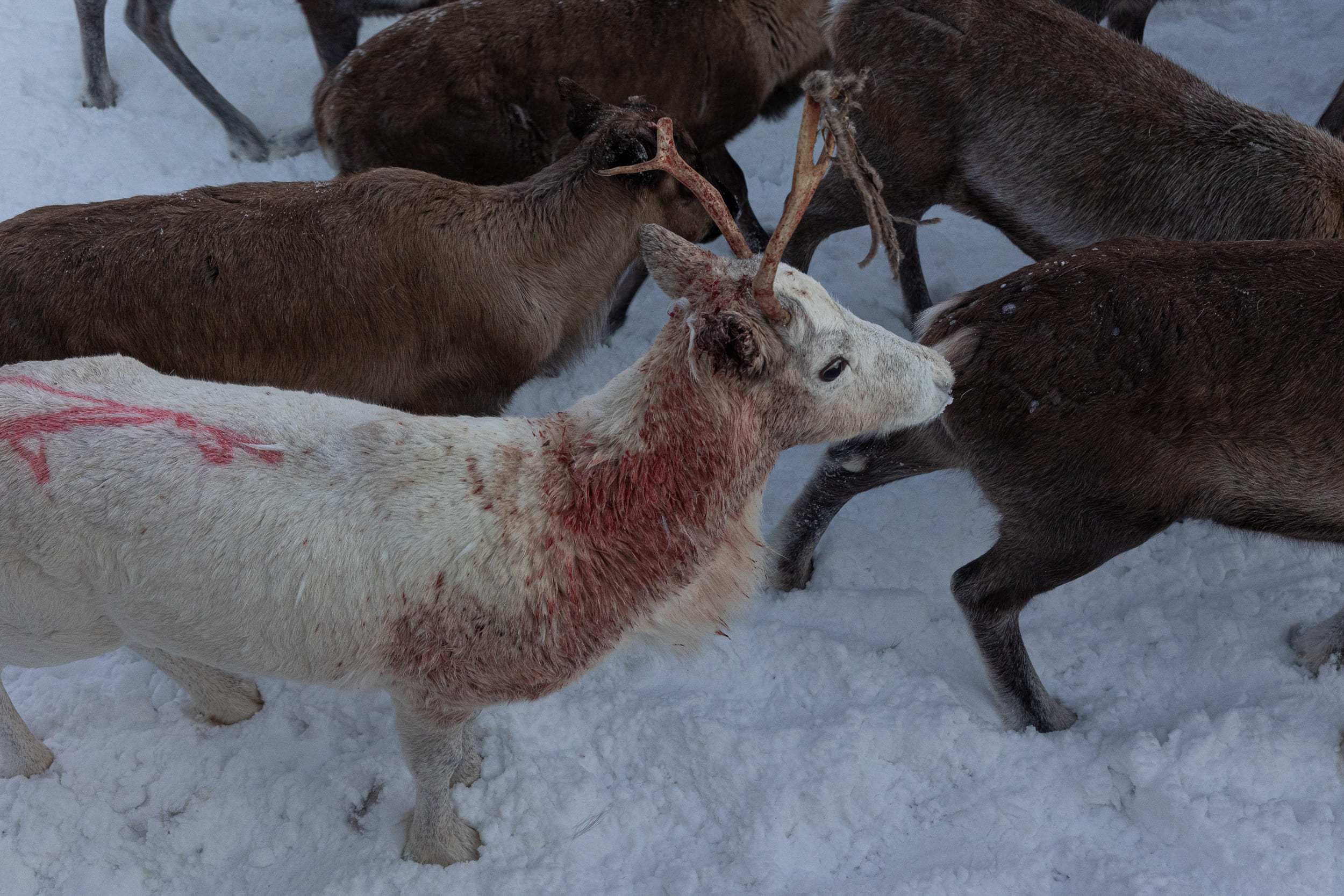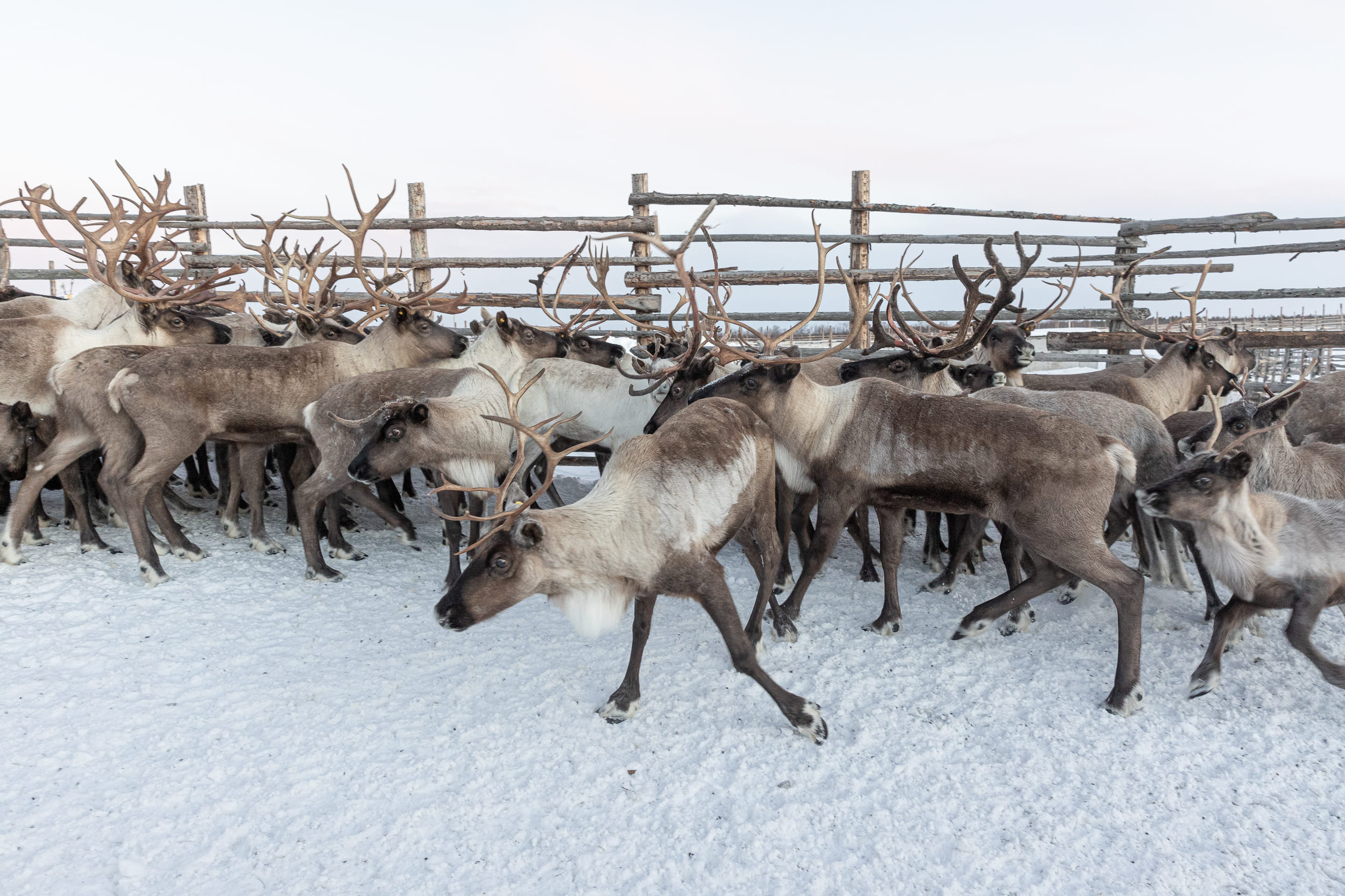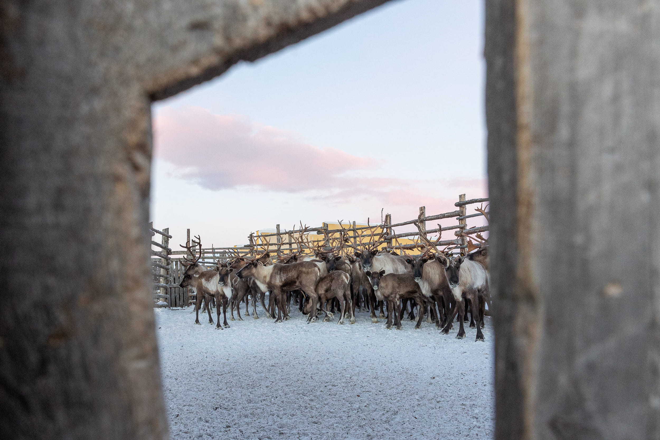 Олени в загоне СХПК «Тундра» перед забоем.