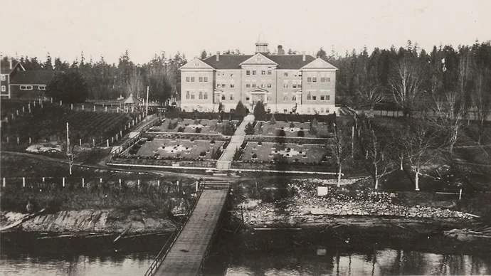 Школа-интернат Купер-Айленд. За своё расположение на острове получила прозвище «Алькатрас» по аналогии с тюрьмой. За время существования школы умер 121 её ученик. Фото: Dept. of Indian and Northern Affairs / Library and Archives Canada / Reuters