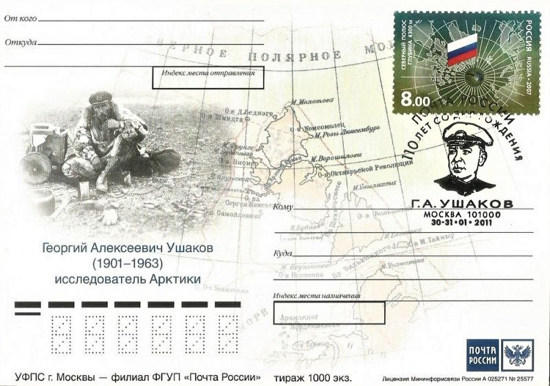 В 1997 году в серии «Полярные архипелаги России» был выпущен художественный маркированный конверт, посвященный Г.А. Ушакову и острову Врангеля