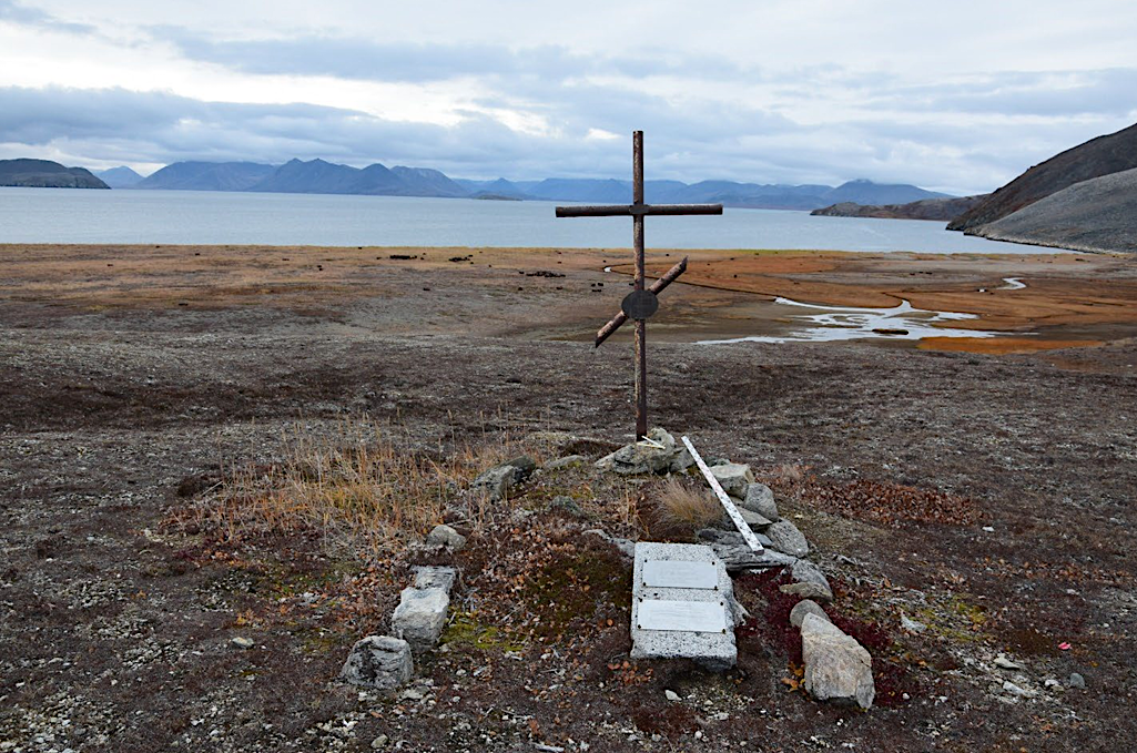 В 1900-м году годы высаживавшийся на безлюдном острове участник геологической экспедиции К.И Богдановича доктор И. Н. Акинфиев (о котором есть упоминание в материале GoArctic – он еще и бабочек Арктики собирал, и этнографическую коллекцию для Академии наук) записал: «Вокруг тихо, пустынно, мертво. Голые немые горы стоят вокруг и берегут одинокую могилу, а внизу плещет холодное прозрачное море, покрытое льдом. И только у самого креста, между камней, забился маленький пучок бледных незабудок…».