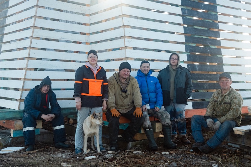 Бригада строителей и процесс реконструкции маяка. Фото: Иван Митюшёв. Источник: национальный парк «Онежское Поморье» / vk.com/onpomorie