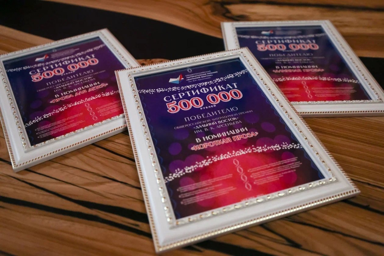 Общероссийская литературная премия «Дальний Восток» им. В. К. Арсеньева с 2019 года поддерживает писателей Дальнего Востока и тех, кто пишет на дальневосточные темы. На церемонии награждения победителей 2025 года были объявлены лауреаты премии в номинациях «Длинная проза», «Короткая проза», «Проза для детей» и «За вклад в развитие Дальнего Востока». Оргкомитет выбрал лучшие из 80 работ участников из 15 регионов России, Китая, Республики Кореи и Казахстана.
