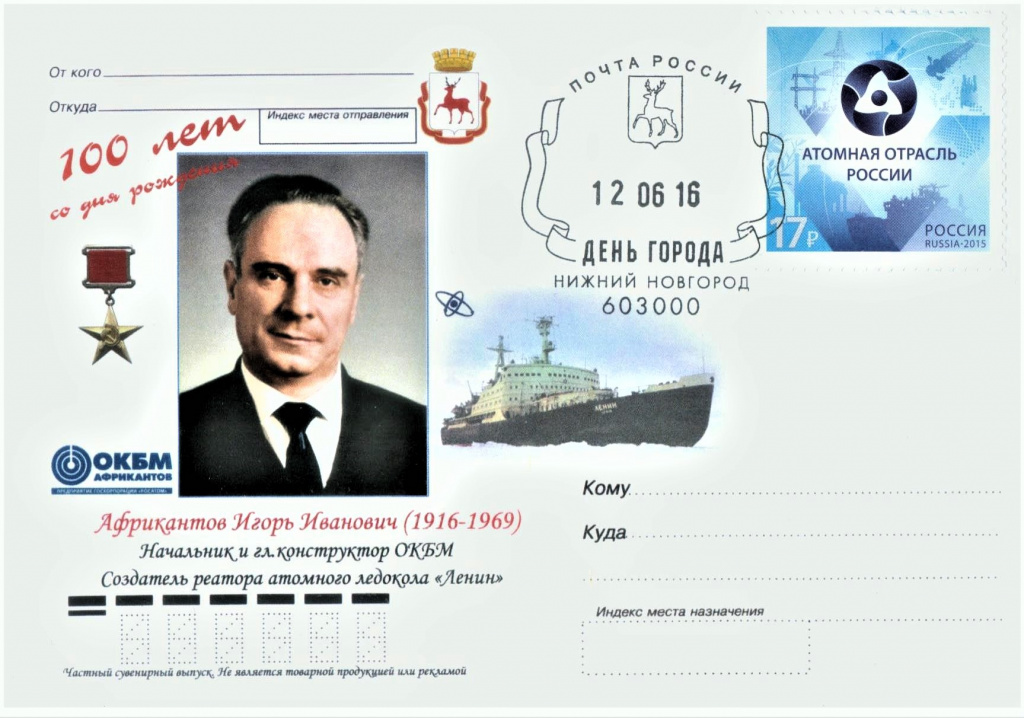 Конверт 2016 года, посвященный 100-летию со дня рождения И.И. Африкантова