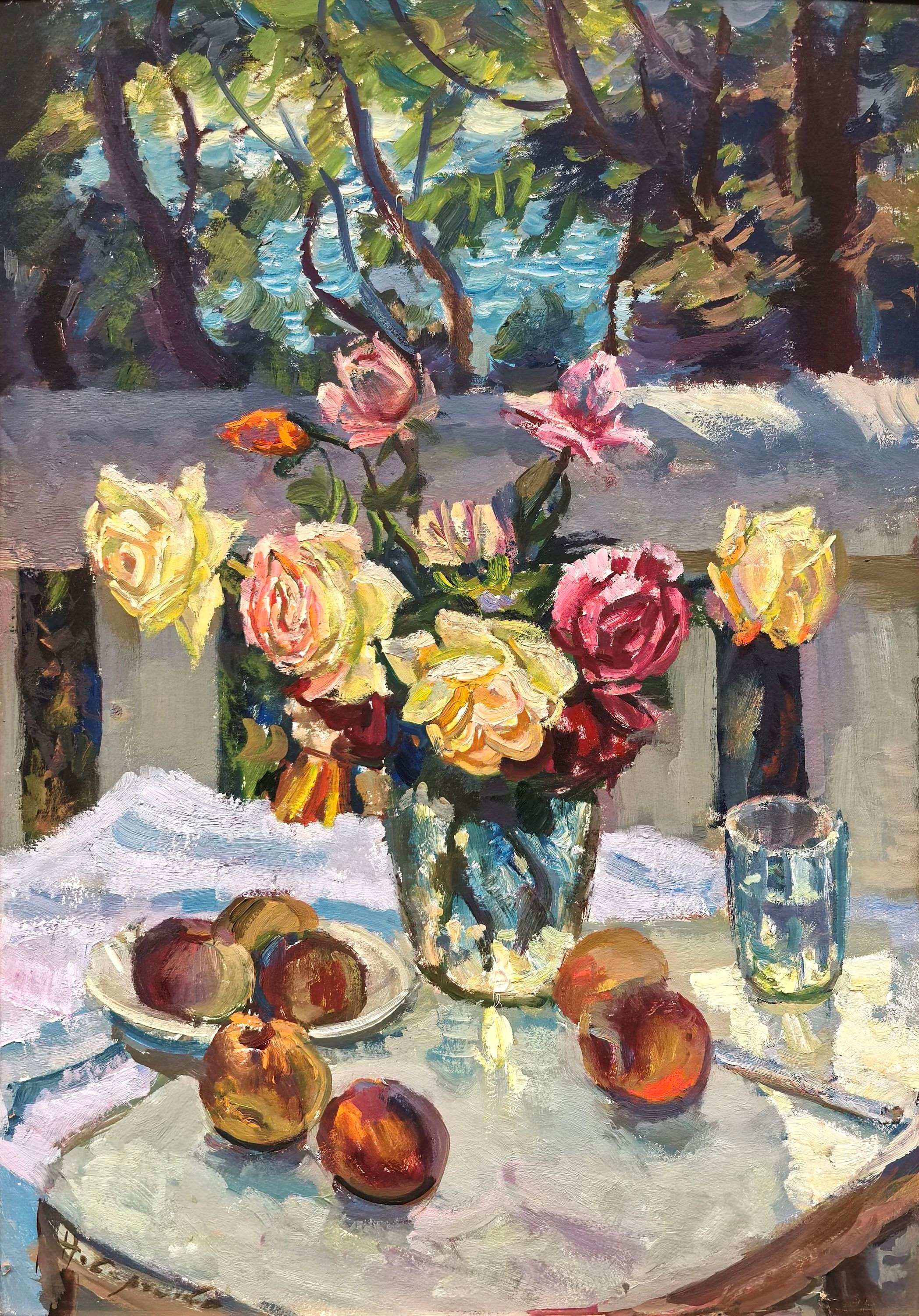 Нина Сергеева. «Чайные розы» (фрагмент). 1983 год. Холст, масло. 80х60. Из художественного собрания Музея Норильска. Источник: norilskmuseum.ru