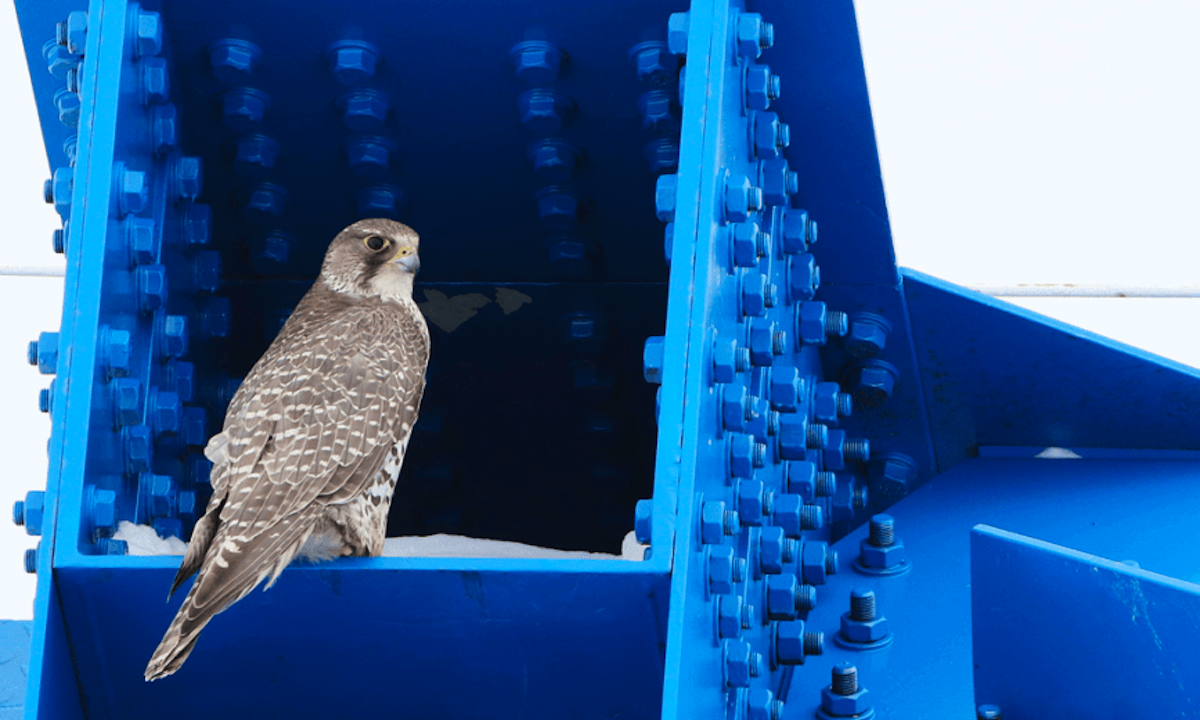 Кречет на мостовых конструкциях железной дороги. Автор фото: Александр Соколов / arctic-rf.ru