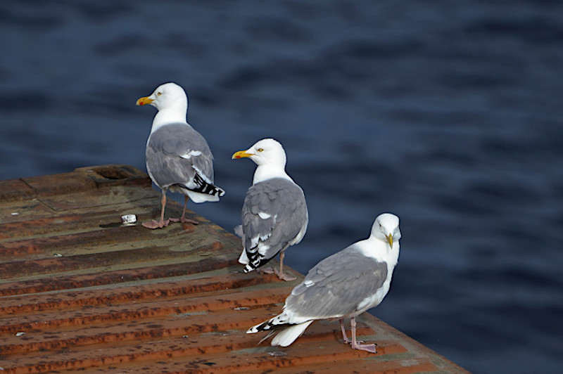 Чайки халей на судне в ходе рейса. Фото предоставлено одним из исследователей, старшим научным сотрудником, к.б.н. Игорем Чупиным. Источник: sbras.info