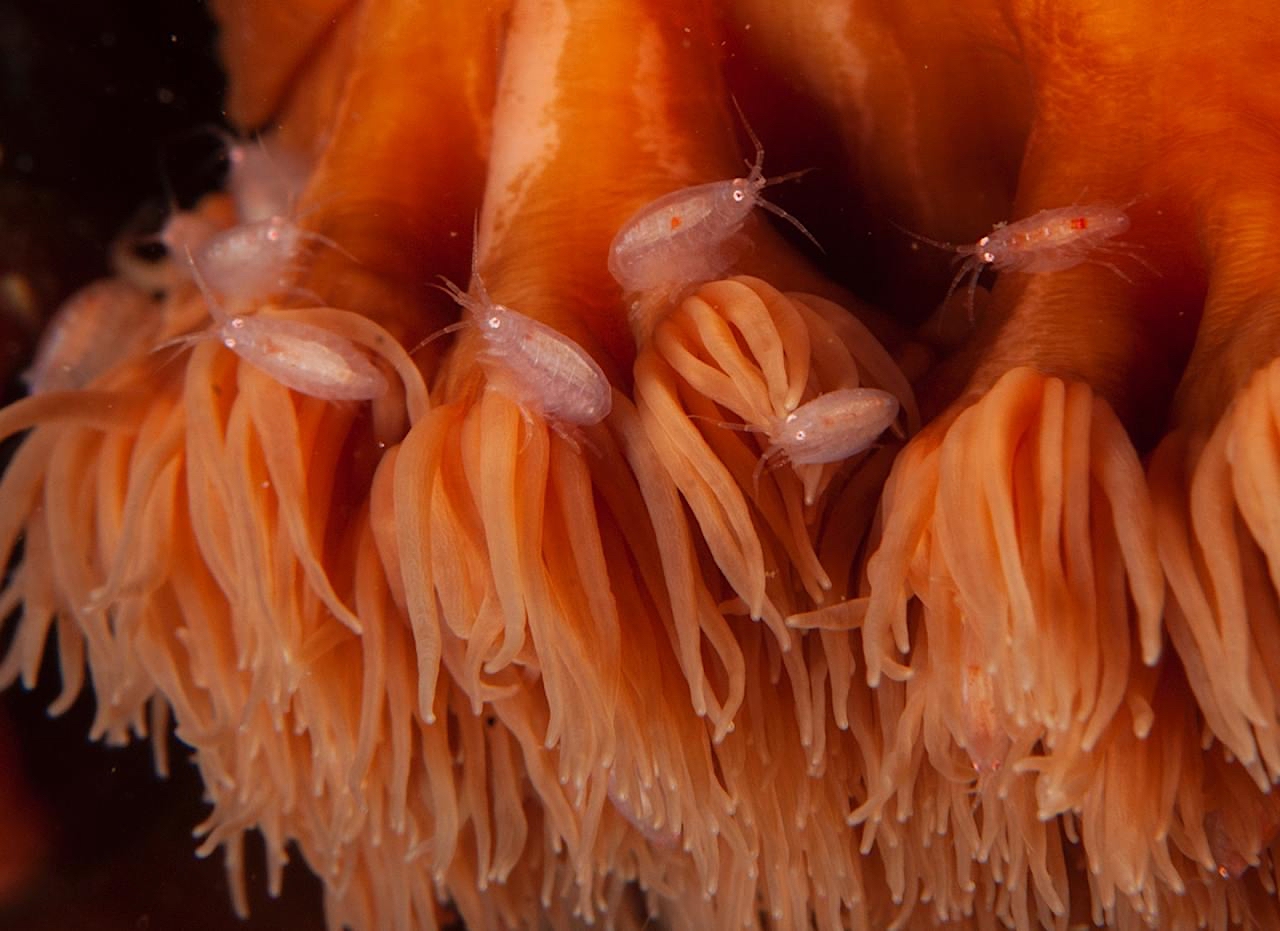 Рачки-бокоплавы Stenula solbergi, новый вид для Белого моря, на актиниях. Фото: Наталия Червякова. Источник: Туристический центр «Полярный круг»