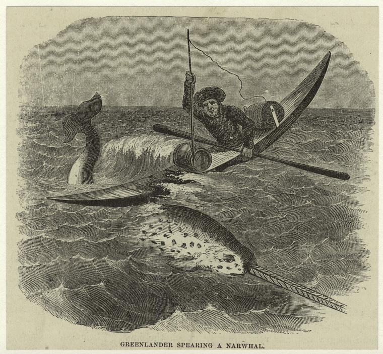 Охота гренландца на нарвала. Рисунок XIX века. Источник: New York public library