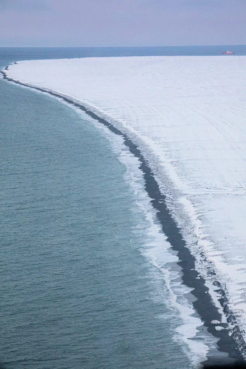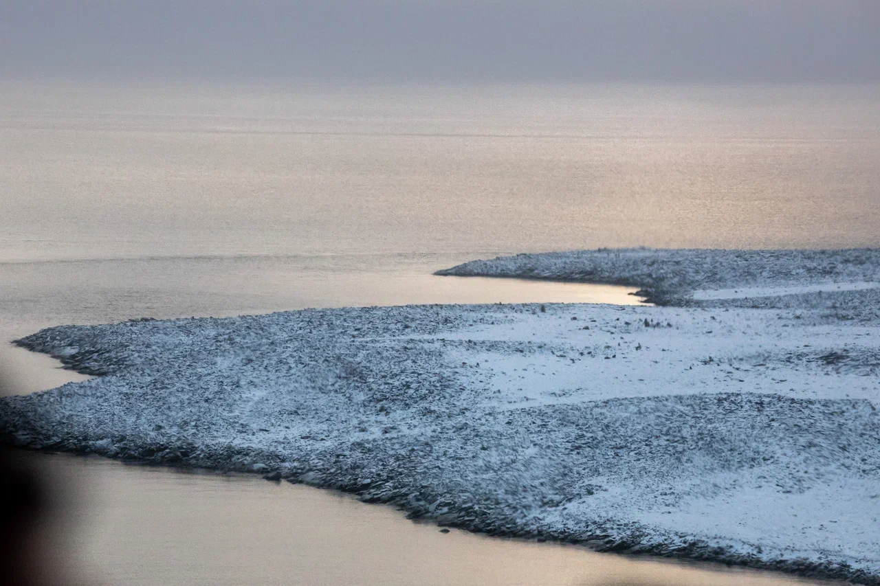 Дальше у нас на пути лежала группа островов Литке, названная в 1901 году в честь основателя Русского географического общества графа Фёдора Петровича Литке – русского мореплавателя, географа, исследователя Арктики и президента Академии наук в 1864–1882 годах. Остров Педашенко – длинный и узкий, получивший своё имя в честь астронома-геодезиста Александра Дмитриевича Педашенко, работавшего в 1898–1901 гг. на Шпицбергене, – нам удалось облететь лишь с одной стороны. Мы увидели всё те же каменные россыпи на поверхности острова и ещё заметили, что небо быстро затягивает, а это может стать препятствием для продолжения нашего полёта.