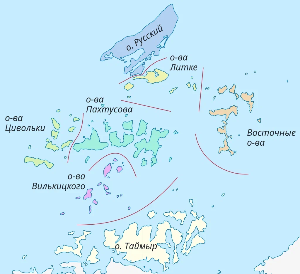 В юго-восточной части Карского моря немного западнее Северной Земли разбросан в море архипелаг Норденшёльда. С запада на восток этот архипелаг протянулся на 93 км, он состоит из 90 островов. Эти острова сгруппированы в 5 отдельно лежащих групп: острова Вилькицкого, Восточные, Литке, Пахтусова и Цивольки. И несмотря на то, что архипелаг находится недалеко от побережья полуострова Таймыр и рядом с трассой Северного морского пути, он не часто упоминается в литературе. Но нам посчастливилось пролететь на вертолёте над несколькими островами этого архипелага, и теперь я хочу рассказать вам о том, как выглядят эти необитаемые северные острова с высоты птичьего полёта.
