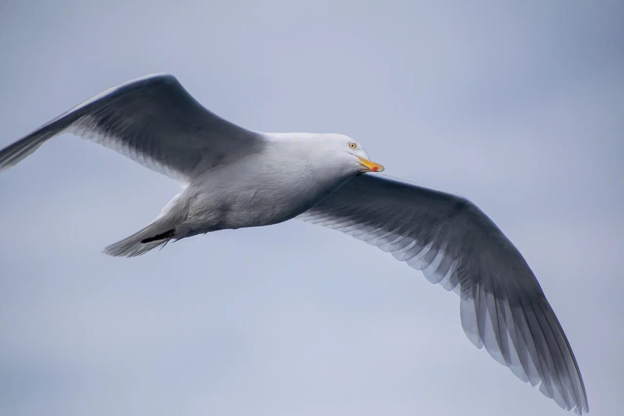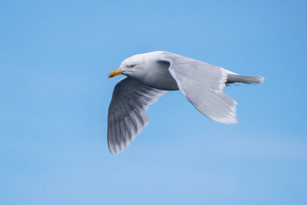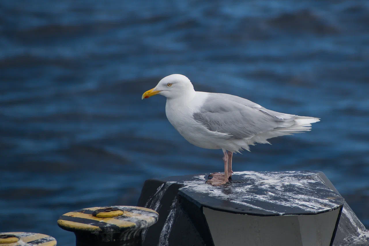 Бургомистр – очень большая бледная чайка. Отличается от большинства других видов крупных чаек белыми кончиками крыльев. Взрослые птицы почти полностью белые с бледно-серой спиной. Молодые птицы имеют беловатый оттенок. Бургомистр гнездится в Арктике, зимует дальше на юг. Часто присоединяется к стаям других видов крупных чаек – у нас бургомистр сидел на борту рядом с халеем.