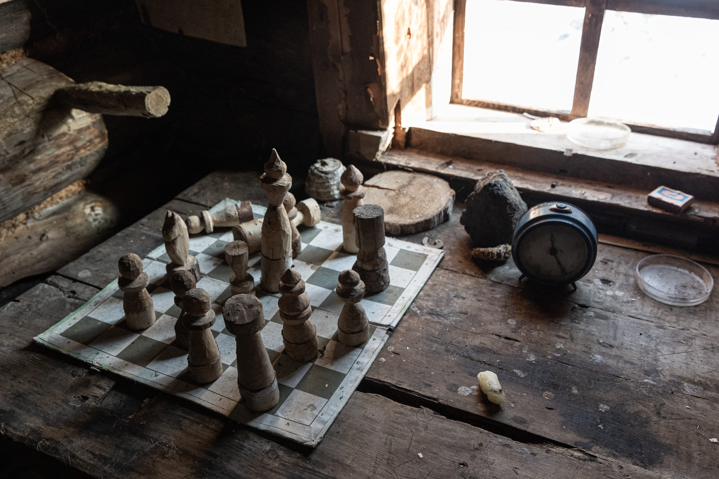 Шахматы на подоконнике в командорской избе