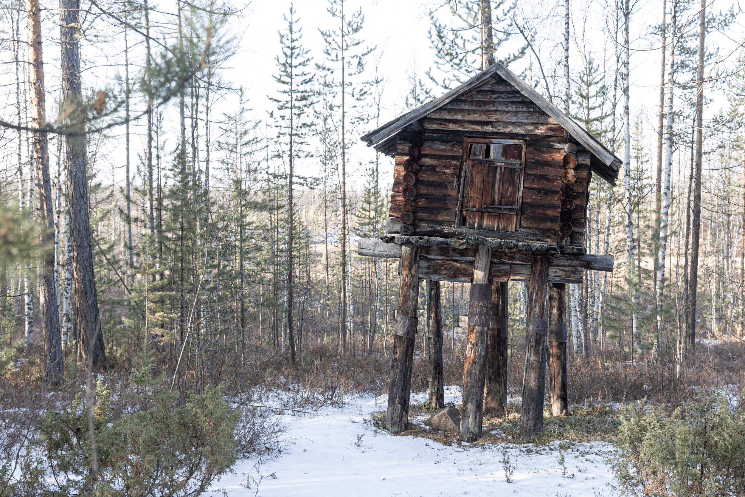 Лабаз – постройка для хранения припасов. Она поднята от земли, чтобы дикие звери не могли добраться до припасов экспедиции.