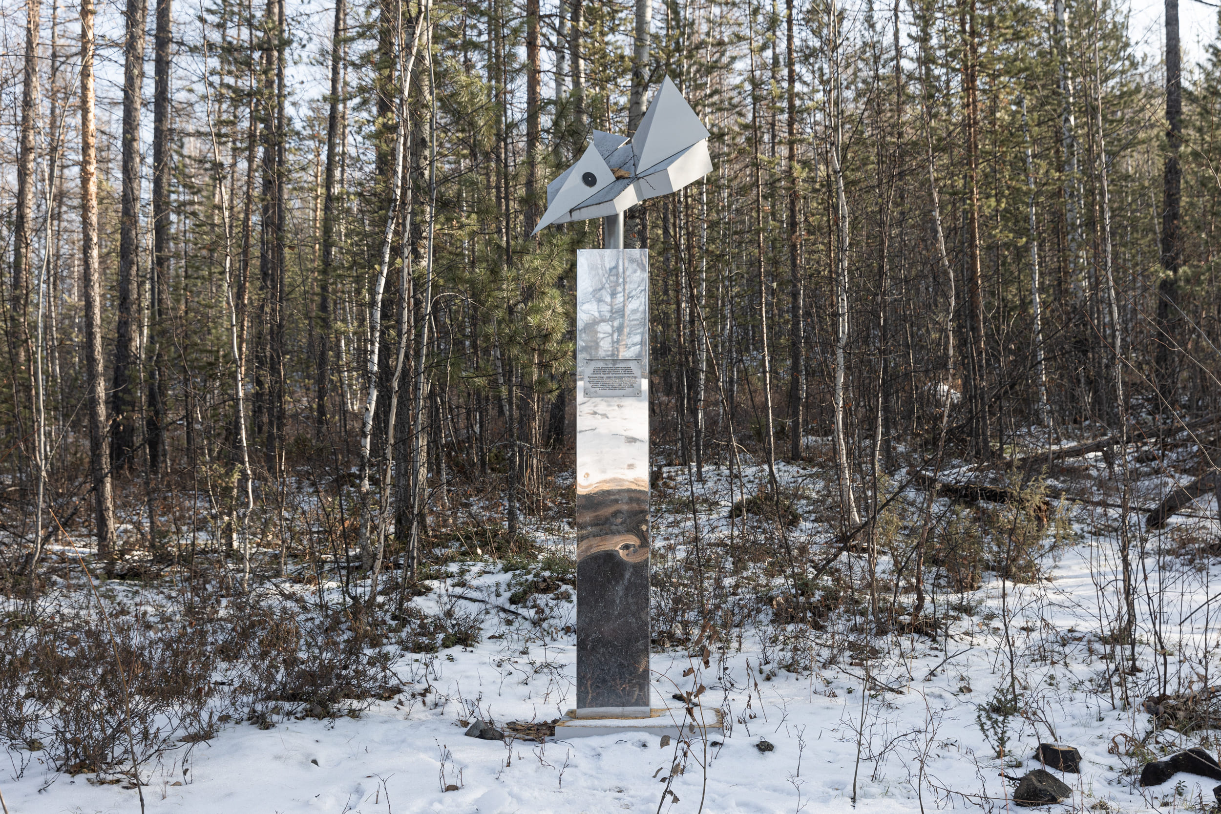 Памятник Тунгусскому метеориту, установленный на заимке Кулика