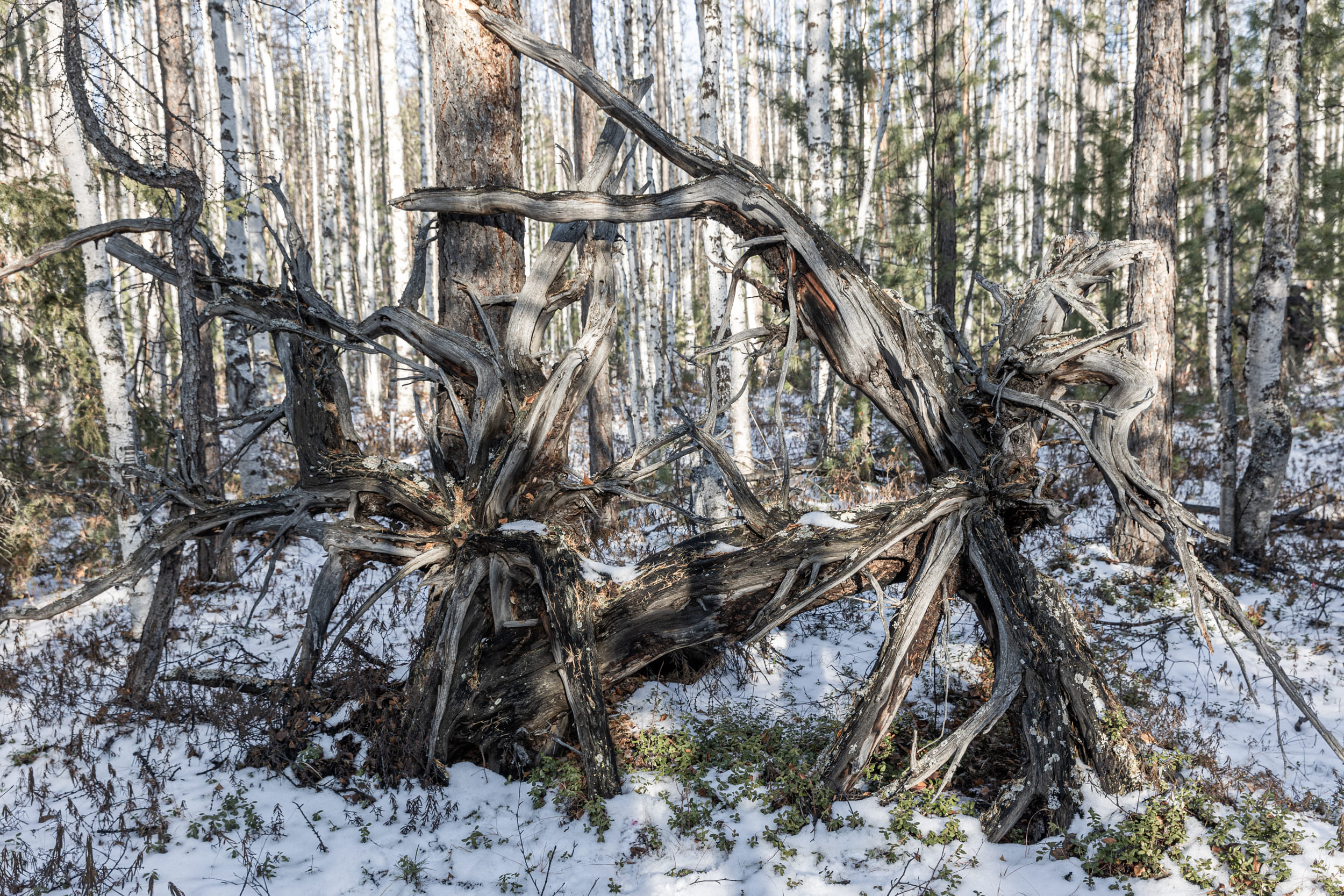 Деревья, пострадавшие от взрыва в 1908 году, недалеко от эпицентра. Сотрудники заповедника называют их «выворотни» и водят к ним редких туристов и журналистов, как к достопримечательности.