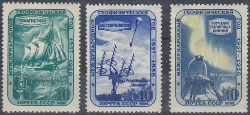Советские марки, посвящённые МГГ. Источник: Wikimedia