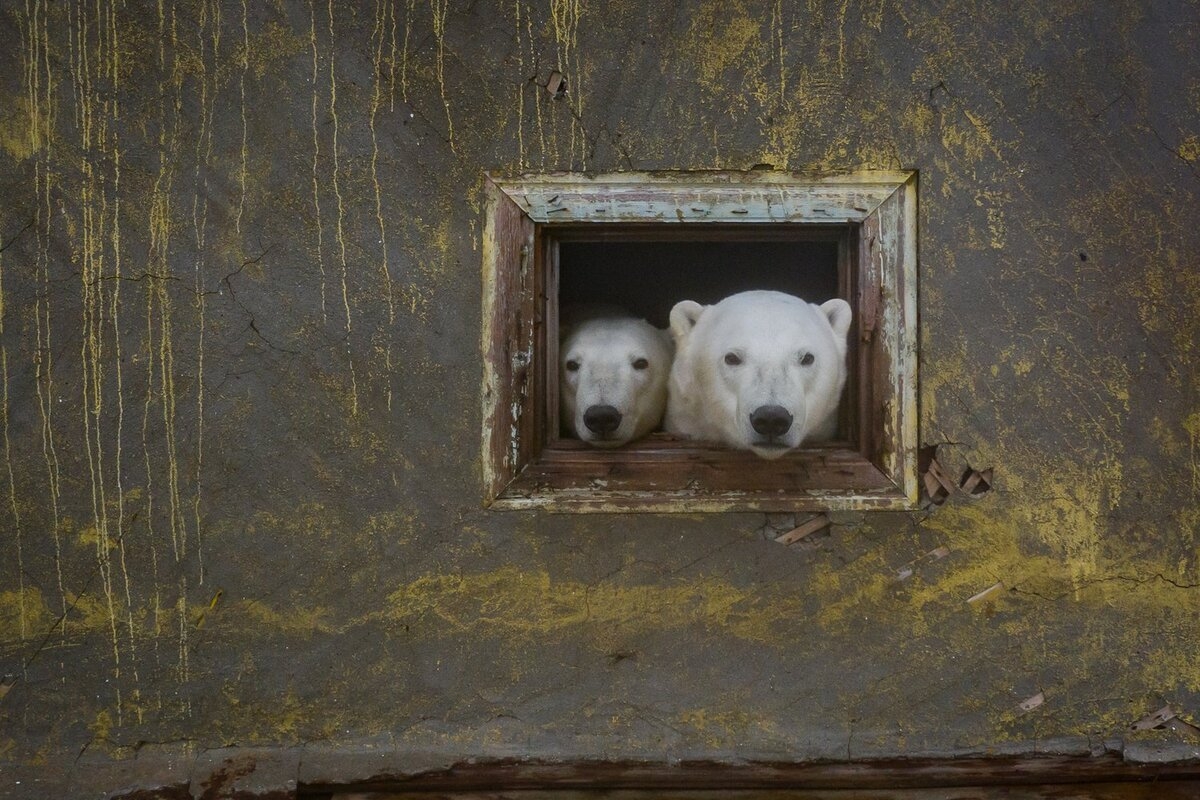 Белые медведи на заброшенной станции острова Колючин. Кадр, выбранный Associated Press. Автор: Вадим Махоров. Источник: vk.com/dedmaxopka