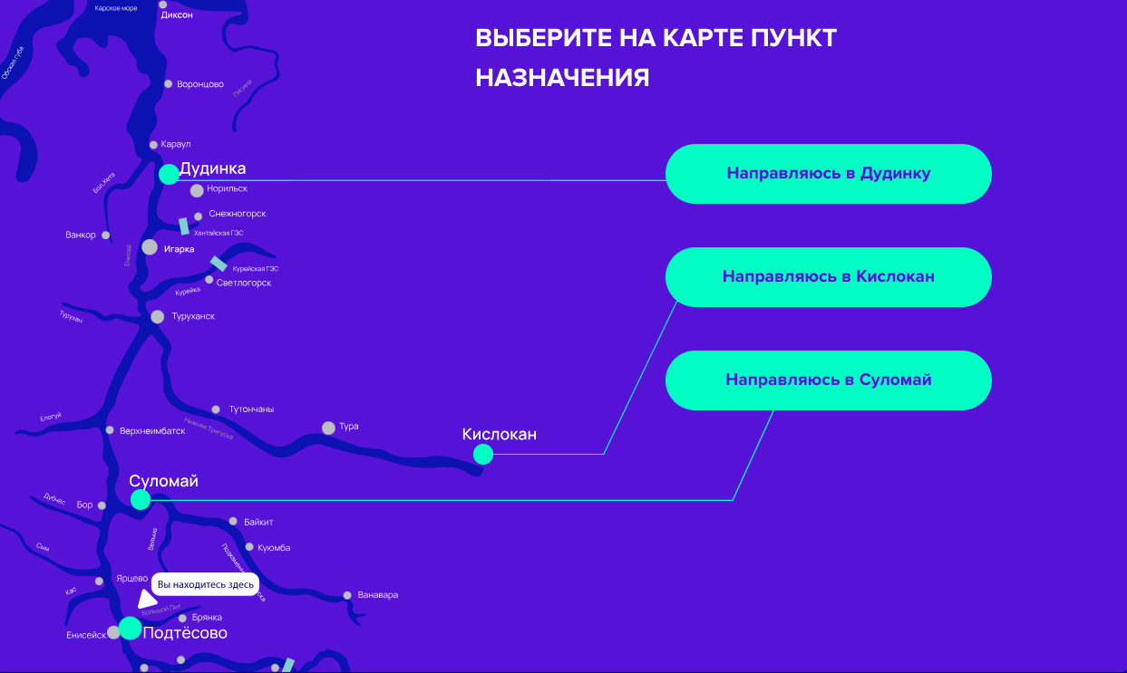 Енисейское речное пароходство (ЕРП) в 2026 году отметило 95-летие со дня основания и предлагает увлекательный квест, в ходе которого можно почувствовать себя капитаном судна, которому предстоит пройти тысячи километров по Енисею и доставить груз в отдалённые посёлки Арктики за 14 дней. Квест предлагает игроку самостоятельно осуществить северный завоз по всему бассейну Енисея.