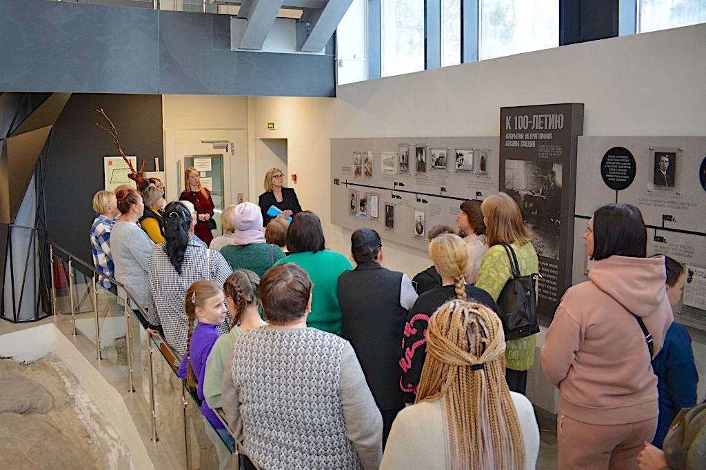 Выставка «И камни могут говорить» в музейном павильоне «Бесовы следки». Слева можно увидеть край скалы с рисунками, над которыми построен павильон. Источник: gov.karelia.ru