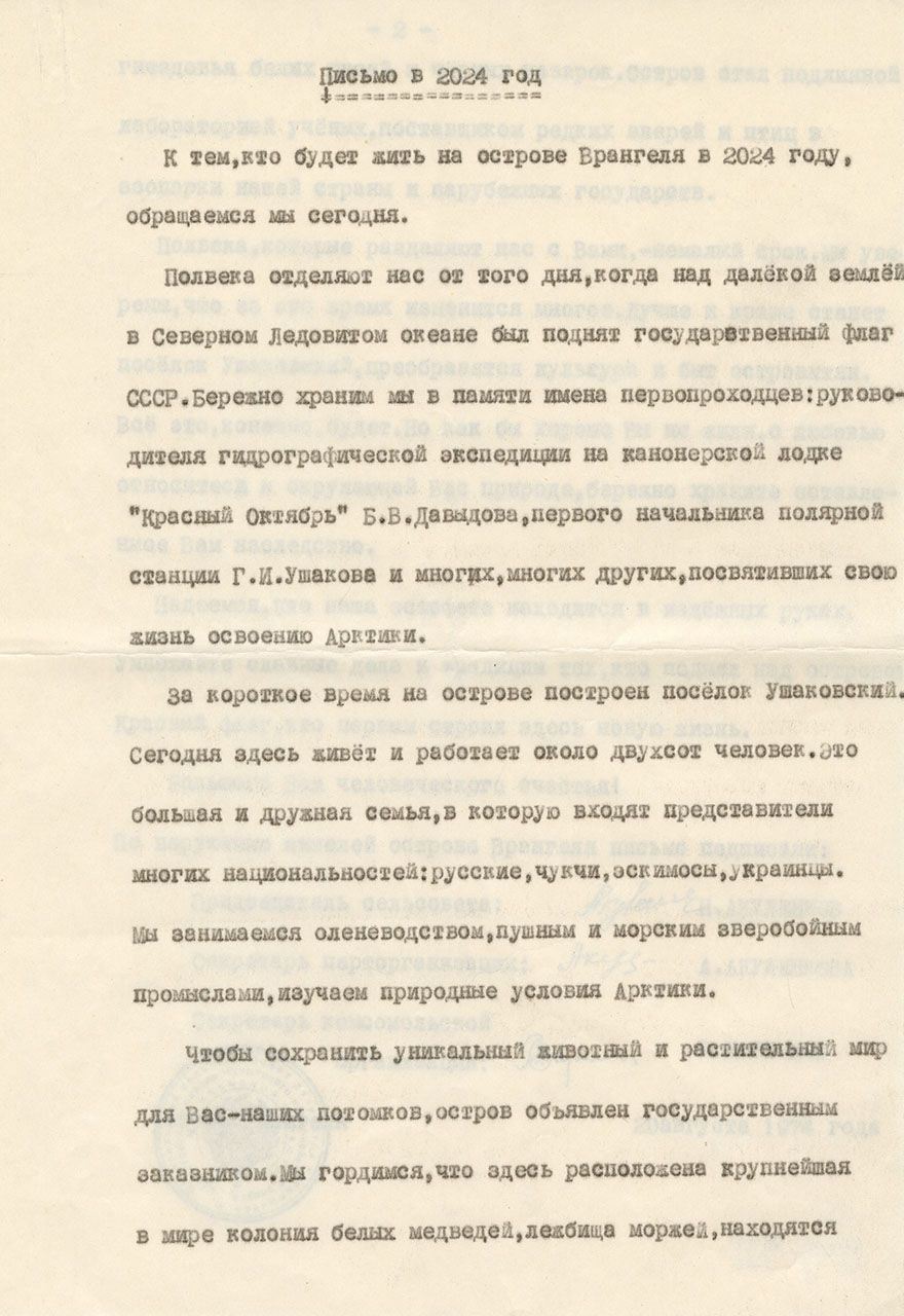 В музей Чукотки на хранение передана капсула времени 1974 года с острова Врангеля, где заложено новое послание потомкам – в 2075-й