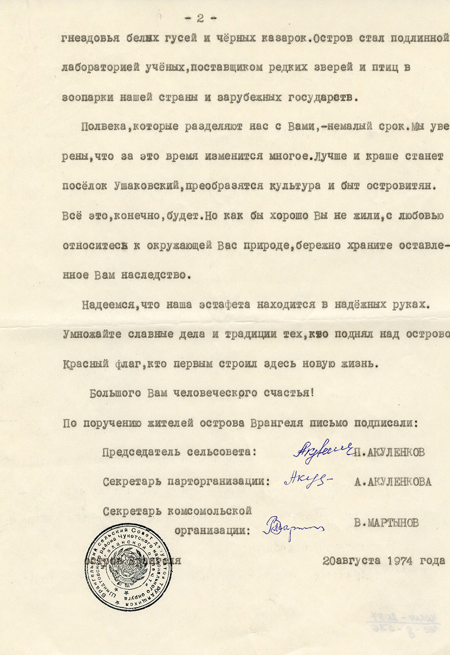 Письмо из 1974 года. Источник: chukotka-museum.ru
