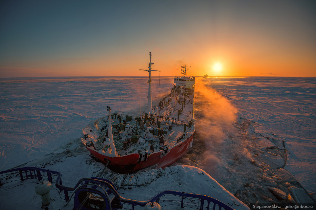 В материале использован репортаж фотографа Славы Степанова об атомных ледоколах.